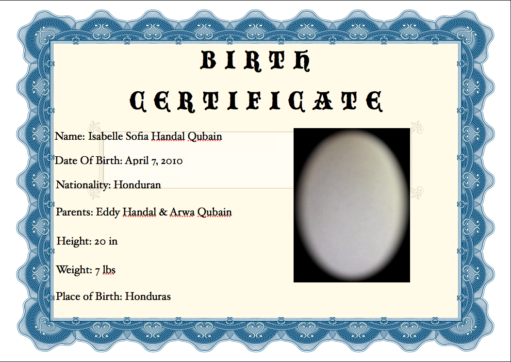 Isabelle Sofia Handal Qubain's Birth